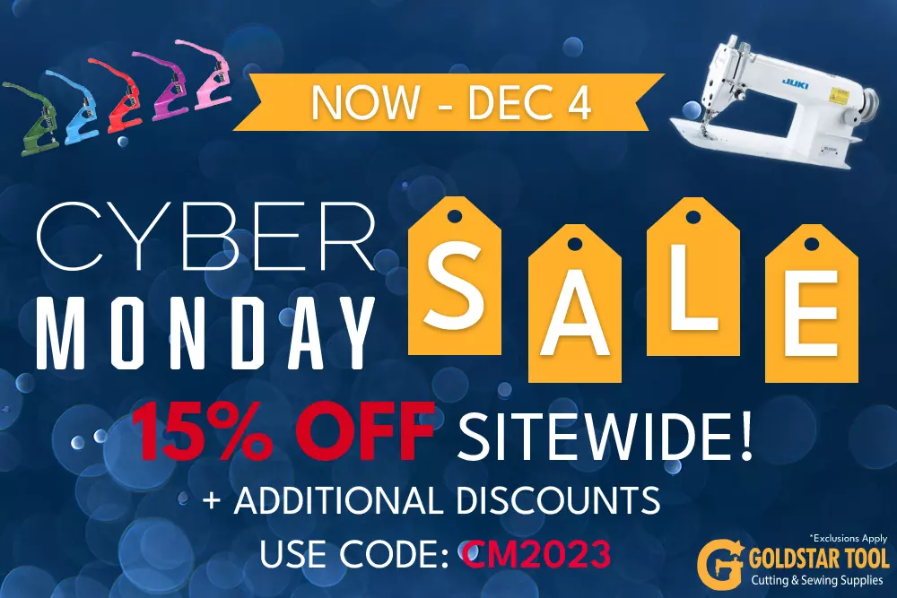 Get ready for an incredible week of sewing machine bargains and accessory steals as GoldStar Tool is proud to announce our Cyber Monday 2023 promotions! From November 27 to December 4, 2023, enjoy a site-wide discount of 15%, and dive into exclusive deals on sewing machines, cutting tools, grommet tools, zippers, and more. Don't miss out on this opportunity to upgrade your sewing arsenal at unbeatable prices. Use code: CM2023.