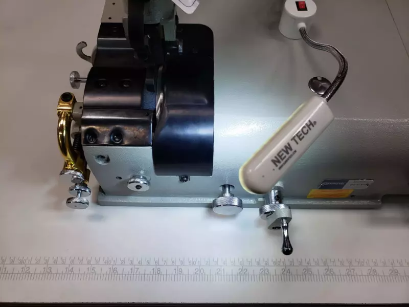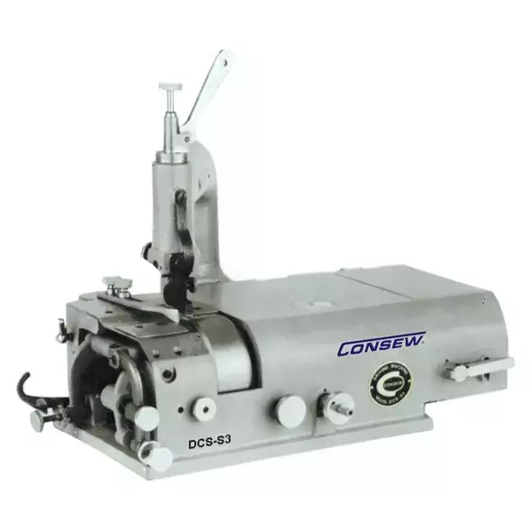 The Consew DCS-S4 Skiving or Scarfing Machine contains a variety of features they include, but not limited to Fortuna-type knife, shoe & plate; Skiving width up to 2"; Waste removing device; Separate clutch for engaging the knife sharpener prolongs the life of the knife and sharpening stone; Removes the backing off of leather.