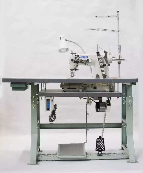 This Juki 3 Needle Coverstitch machine is perfect for hemming of sleeves and bottoms of t-shirts and the covering stitches for sportswear and knitwear. However, it is not a specific-purpose model, but can be used for a broad range of processes independently. Our package for this machine includes a professional table, lamp, pedal and high-quality adjustable servo motor.